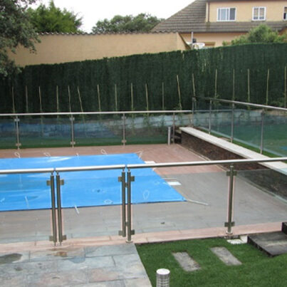 Tales como barandas o cortavientos para divisiones de todo tipo de espacios, con cerramiento decorativo en materas (opcional), manejando vidrio templado y accesorios en acero inoxidable, generando elegancia y seguridad a la vez.